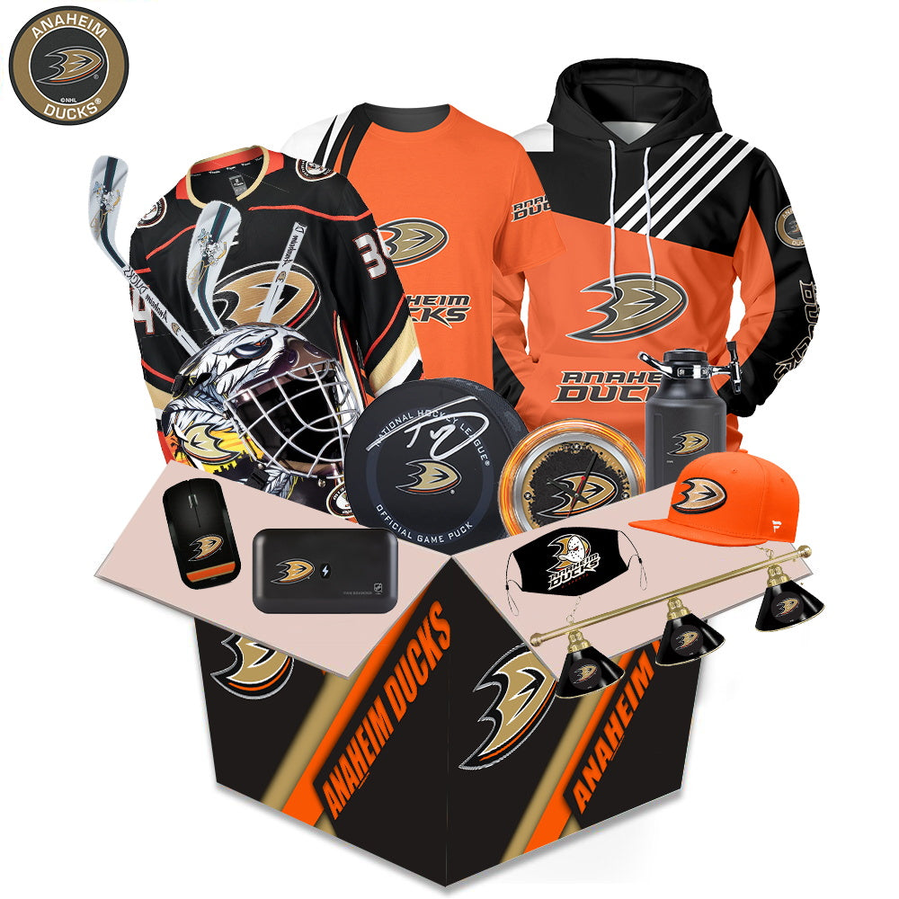 What's in the box During the festival, a limited number of Anaheim Ducks related products will be sent randomly. Related products will be sent randomly. Including: Hoodie, Lego, Characters, Cup, Headphones, Stickers, Airpods Case, iPhone Case, Puzzles, Hats, Pillows and Other Products. (The box is worth more than $100). All items are sent as gifts related to Anaheim Ducks.