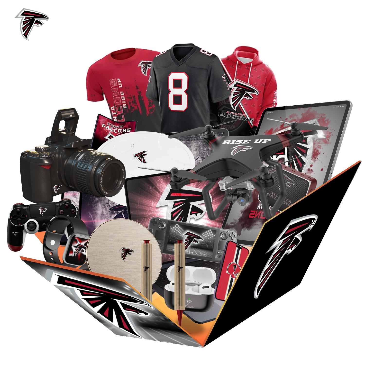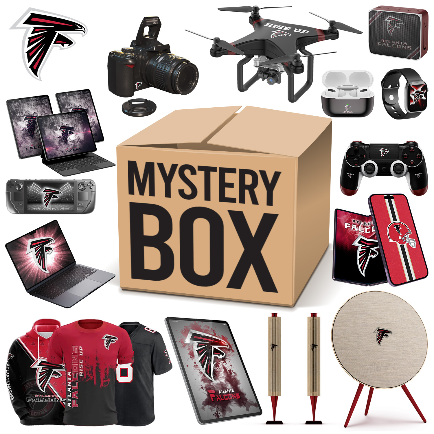 A limited number of Atlanta Falcons will be available during the holiday season. Related products will be shipped randomly. Including Touchscreen Watches, Joystick Consoles, Mobile Phones, Drones, Sweepers, Tablets and other products. (Gift box value exceeds $1,000). All items are Atlanta Falcons related gifts.
