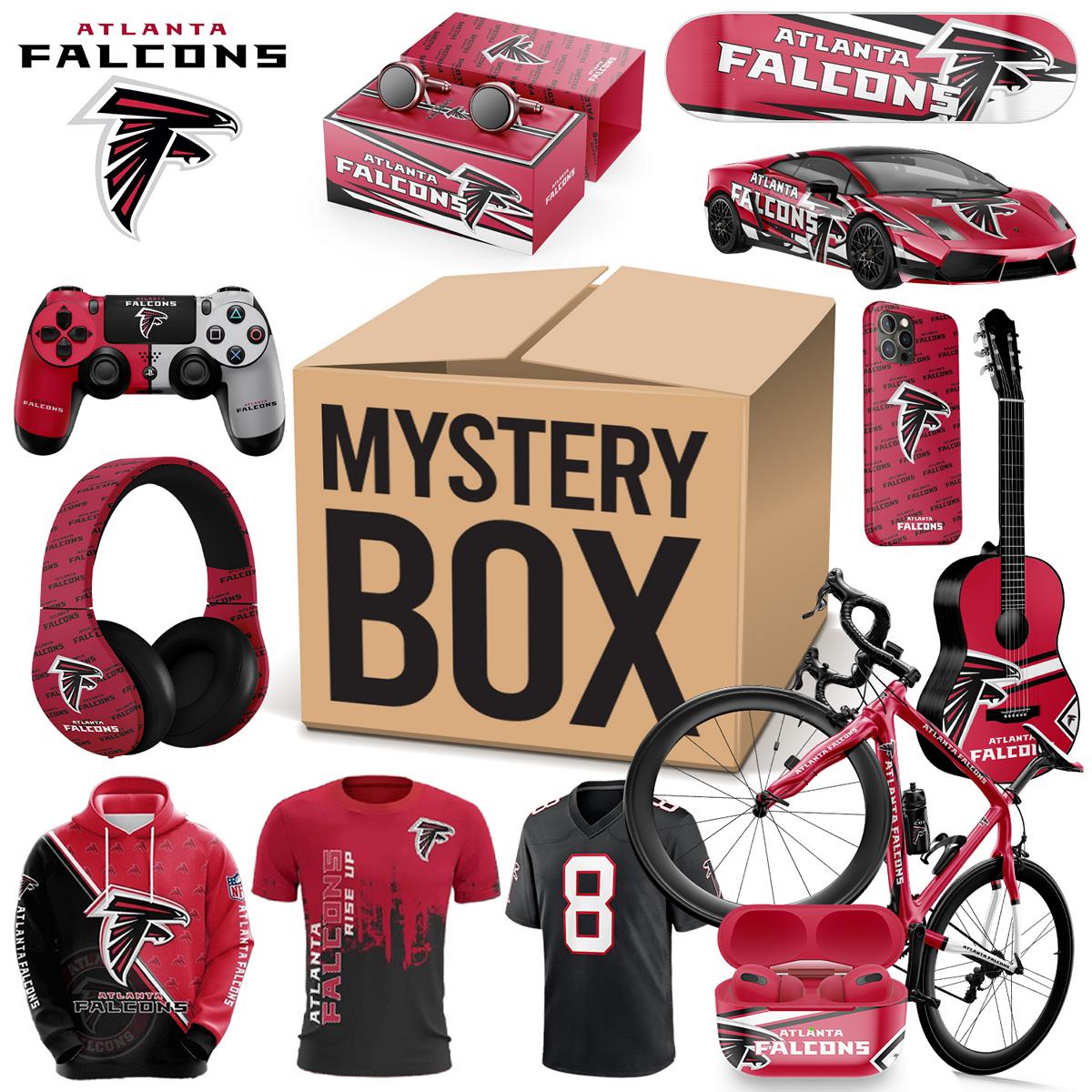 What's in the box During the festival, a limited number of Atlanta Falcons ? Related products will be sent randomly. Including: Hoodie, Lego, Characters, Cup, Headphones, Stickers, Airpods Case, iPhone Case, Puzzles, Hats, Pillows and Other Products. (The box is worth more than $100). All items are sent as gifts related to Atlanta Falcons.