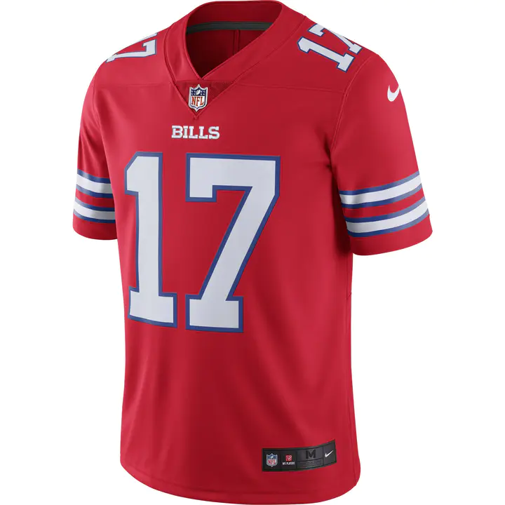 Rep the on-field look of your favorite Buffalo Bills player with this Josh Allen Game jersey by Nike. Its heat-sealed graphics provide a kickoff-ready aesthetic while also offering a comfortable, lightweight feel. Designed for everyday movement, this jersey has a tailored fit and features mesh side panels for added ventilation as you celebrate every big play by Josh Allen this season.