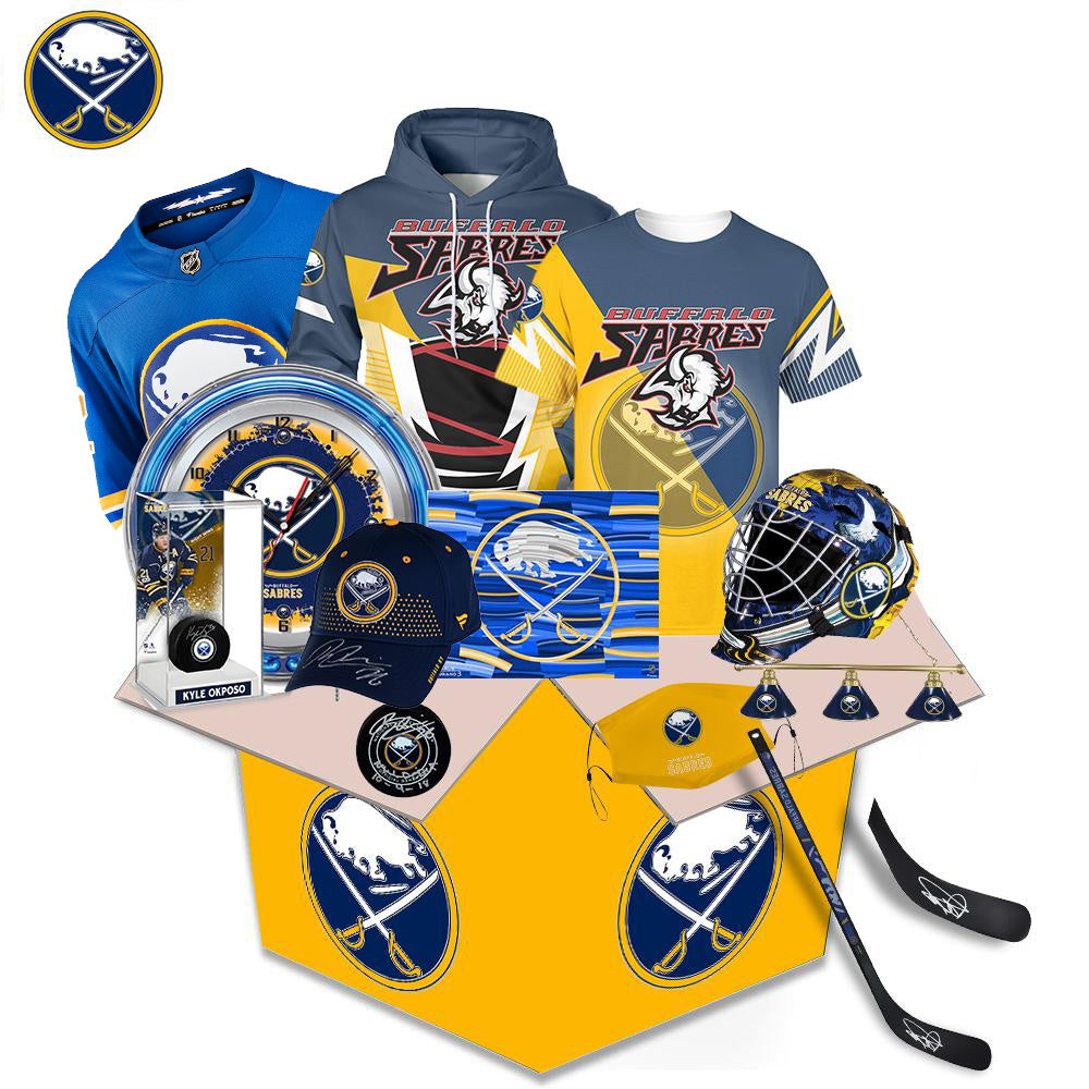What's in the box During the festival, a limited number of Buffalo Sabres related products will be sent randomly. Related products will be sent randomly. Including: Hoodie, Lego, Characters, Cup, Headphones, Stickers, Airpods Case, iPhone Case, Puzzles, Hats, Pillows and Other Products. (The box is worth more than $100). All items are sent as gifts related to Buffalo Sabres.