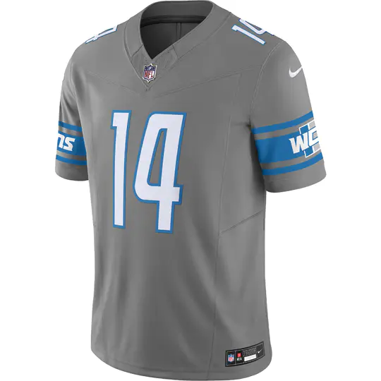 Walking into the stadium, you feel a rush of energy pass over you. You adjust your Detroit Lions Limited jersey and feel yourself getting swept up in all the electricity of the game. This Nike jersey features the state-of-the-art Vapor F.U.S.E. chassis, which delivers an incredibly authentic look and feel so that you might even believe you're out on the field with the Detroit Lions. The twill name and number graphics will ensure that your devotion to Amon-Ra St. Brown is seen by everyone in the stadium. Dri-FIT fabric technology keeps you cool as you're jumping up and down while the Detroit Lions win the game.