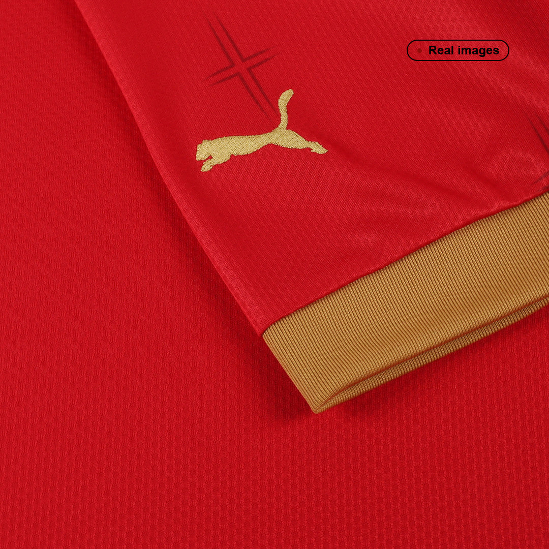 Get ready to cheer on your favorite national football team with our collection of jerseys. These jerseys are made with high-quality materials and feature the team's iconic colors and logo. Whether you're a die-hard fan or just looking to show your support, these jerseys are a must-have for any football enthusiast. Plus, with a variety of sizes available, you can find the perfect fit for any fan. So don't wait, order your national team jersey today from Jerseydor and show your support for your country on the pitch.