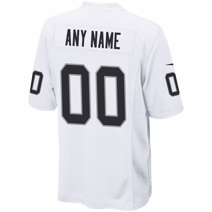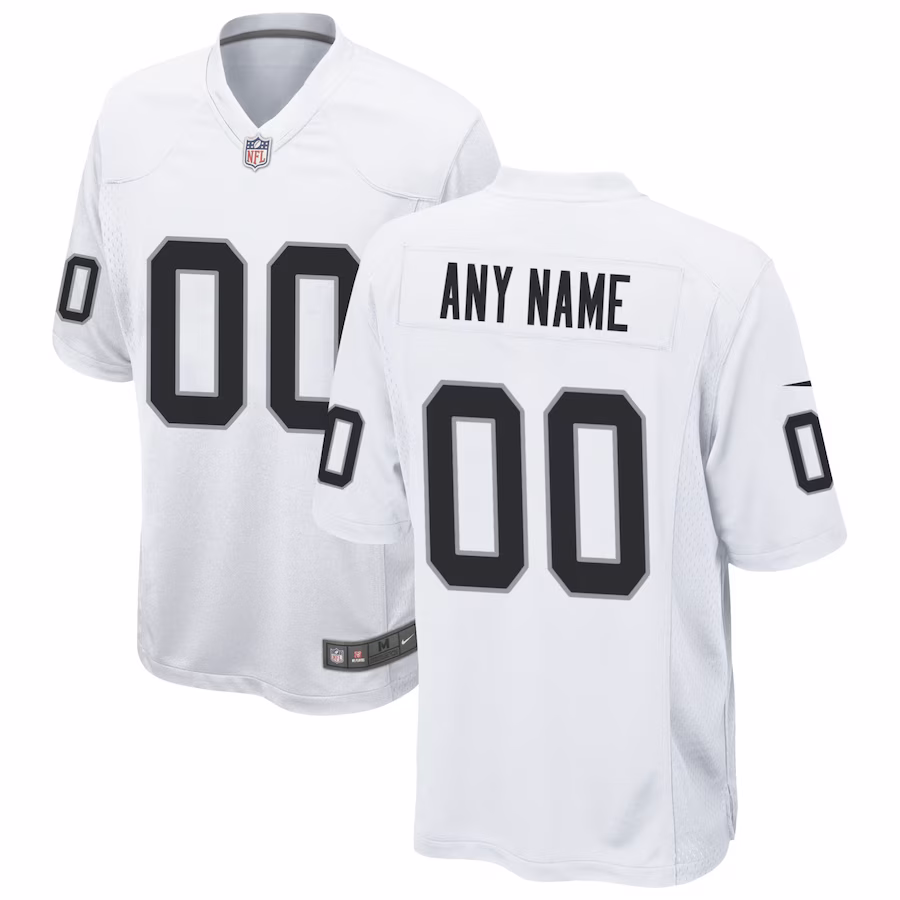 We want fans to celebrate their fandom by customizing and personalizing certain products. For these customizable products, including jerseys, we invite customers to tell us how they would like their preferred name or other text to appear by typing that text into the field indicated. However, just because a customer is able to type proposed customization text into the field and is able to complete the order through the website, not all proposed customization text will be accepted. Please note, We may reject and cancel any customization order for any reason, including for messages that are deemed offensive or inappropriate. Take your Las Vegas Raiders fandom to the next level when you grab this Custom Game Jersey. This Nike gear is perfect for an avid Las Vegas Raiders fan like you who never misses a moment of the action. The crisp graphics will put your unwavering pride on full display and ensure everyone knows who you're rooting for at the next game!