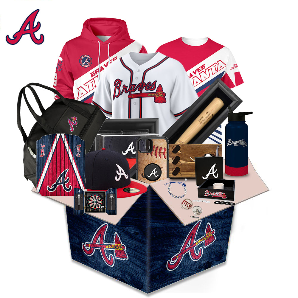 What's in the box During the festival, a limited number of Atlanta Braves related products will be sent randomly. Related products will be sent randomly. Including: Hoodie, Lego, Characters, Cup, Headphones, Stickers, Airpods Case, iPhone Case, Puzzles, Hats, Pillows and Other Products. (The box is worth more than $100). All items are sent as gifts related to Atlanta Braves.