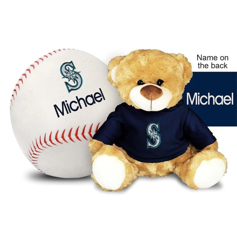 Seattle Mariners 10'' Personalized Plush Bear & Baseball Set - Navy