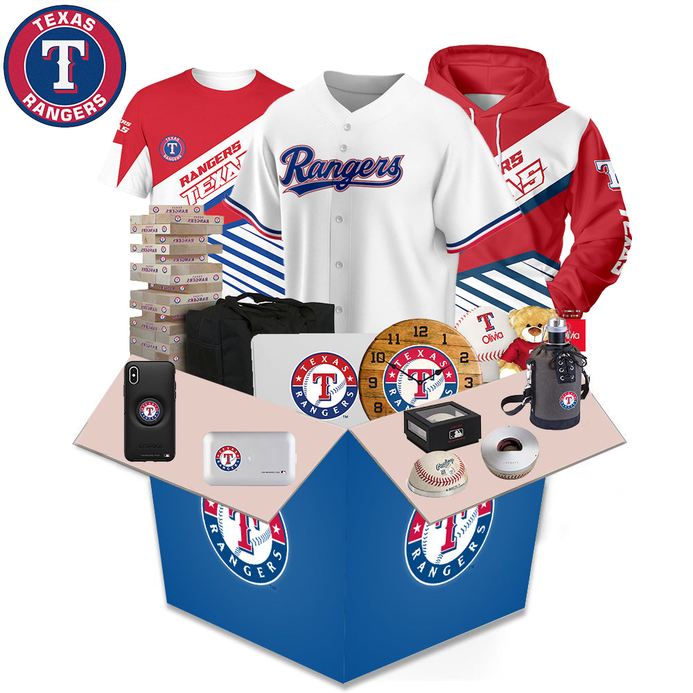 What's in the box During the festival, a limited number of Texas Rangers related products will be sent randomly. Related products will be sent randomly. Including: Hoodie, Lego, Characters, Cup, Headphones, Stickers, Airpods Case, iPhone Case, Puzzles, Hats, Pillows and Other Products. (The box is worth more than $100). All items are sent as gifts related to Texas Rangers.