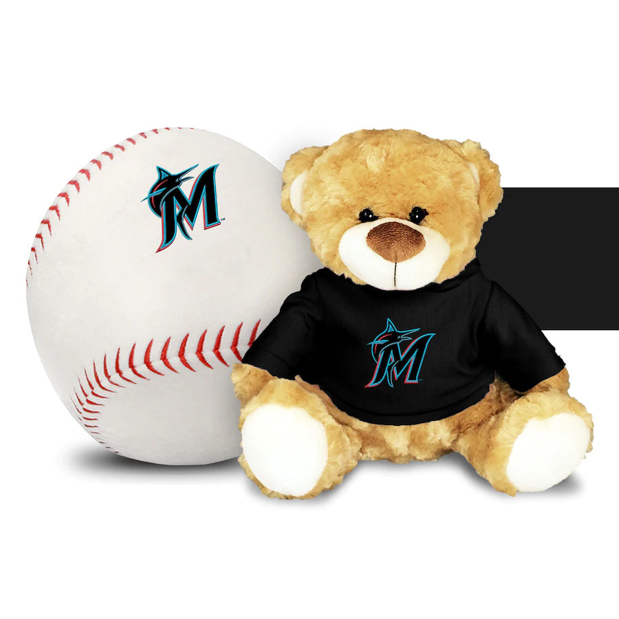 Miami Marlins 10'' Personalized Plush Bear & Baseball Set - Black