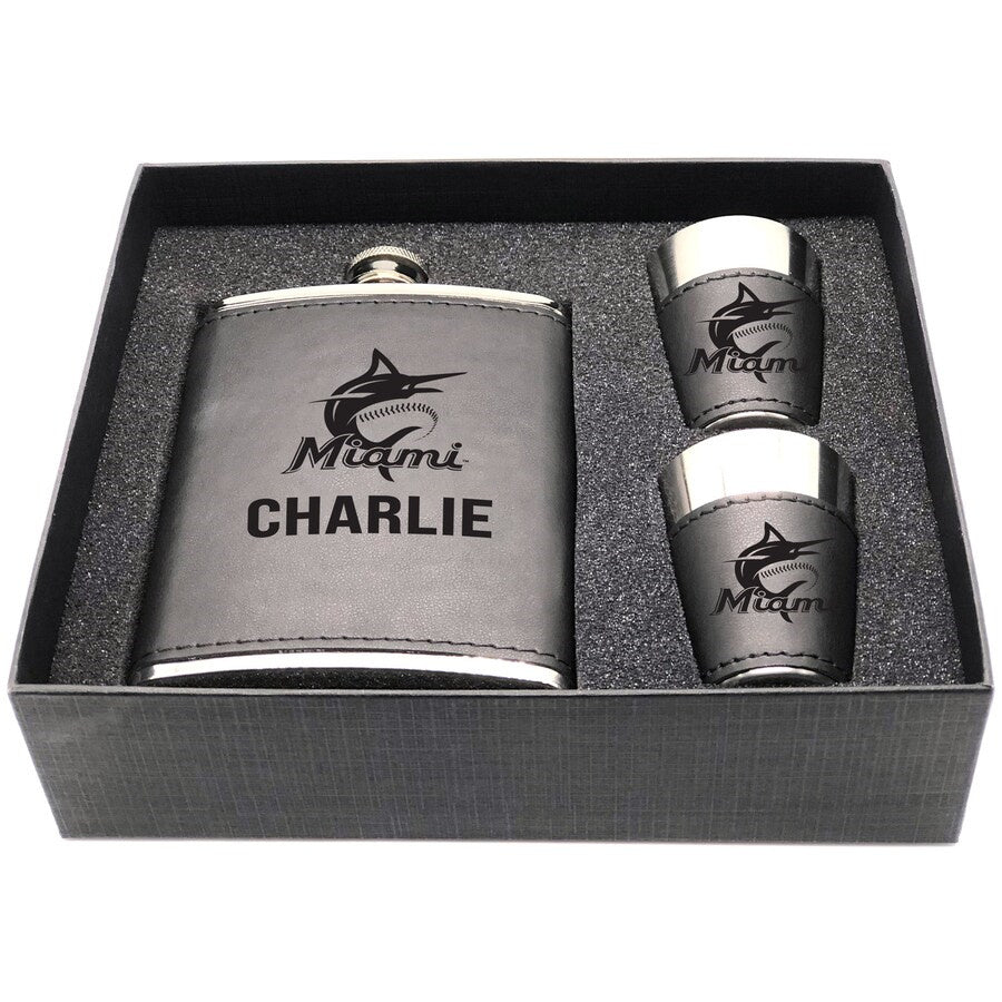 Miami Marlins Personalized Shot and Flask Set