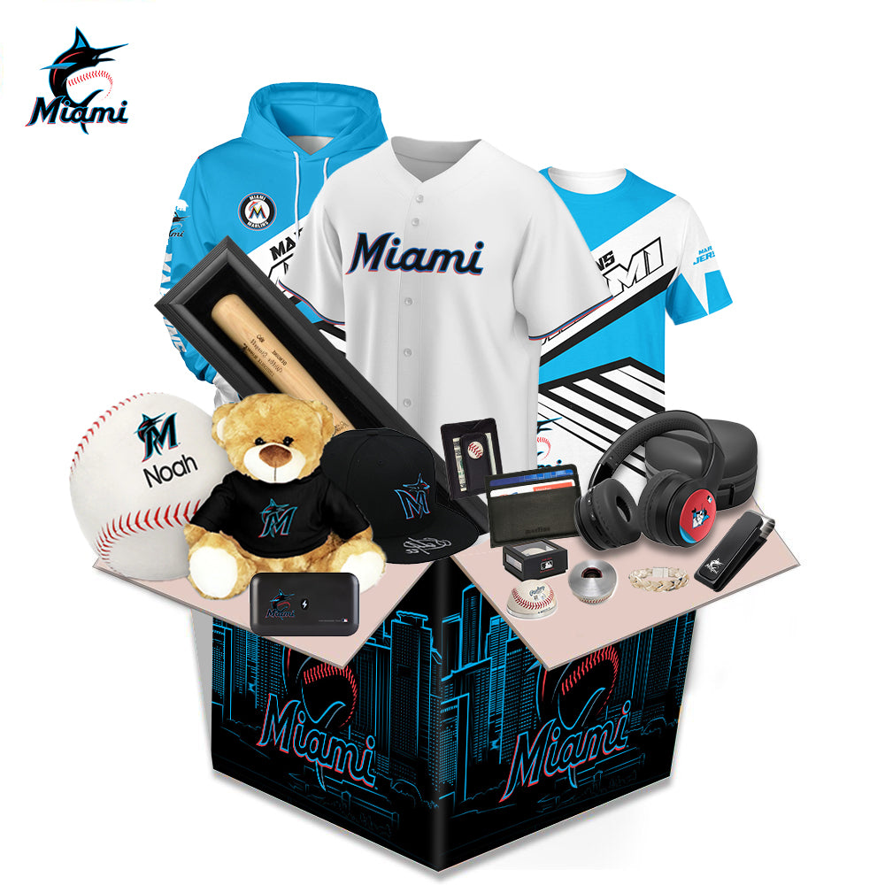What's in the box During the festival, a limited number of Miami Marlins related products will be sent randomly. Related products will be sent randomly. Including: Hoodie, Lego, Characters, Cup, Headphones, Stickers, Airpods Case, iPhone Case, Puzzles, Hats, Pillows and Other Products. (The box is worth more than $100). All items are sent as gifts related to Miami Marlins.