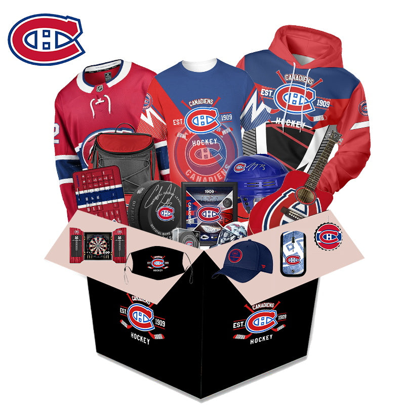 What's in the box During the festival, a limited number of Montreal Canadiens related products will be sent randomly. Related products will be sent randomly. Including: Hoodie, Lego, Characters, Cup, Headphones, Stickers, Airpods Case, iPhone Case, Puzzles, Hats, Pillows and Other Products. (The box is worth more than $100). All items are sent as gifts related to Montreal Canadiens.