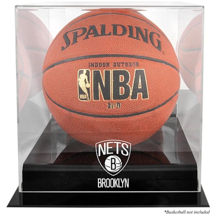 Brooklyn Nets Black Base Team Logo Basketball Display Case with Mirrored Back