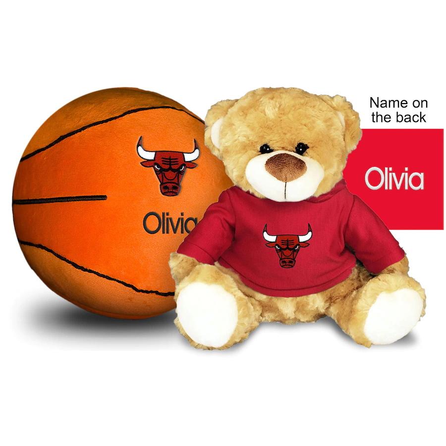 Chicago Bulls 10'' Personalized Plush Bear & Basketball Set - Red
