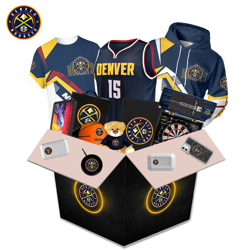 What's in the box During the festival, a limited number of Denver Nuggets? Related products will be sent randomly. Including: Hoodie, Lego, Characters, Cup, Headphones, Stickers, Airpods Case, iPhone Case, Puzzles, Hats, Pillows and Other Products. (The box is worth more than $100). All items are sent as gifts related to Denver Nuggets.