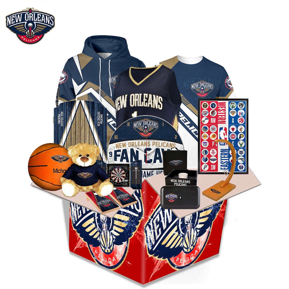 What's in the box During the festival, a limited number of New Orleans Pelicans? Related products will be sent randomly. Including: Hoodie, Lego, Characters, Cup, Headphones, Stickers, Airpods Case, iPhone Case, Puzzles, Hats, Pillows and Other Products. (The box is worth more than $100). All items are sent as gifts related to New Orleans Pelicans.