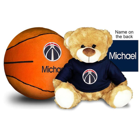 Washington Wizards 10'' Personalized Plush Bear & Basketball Set - Navy