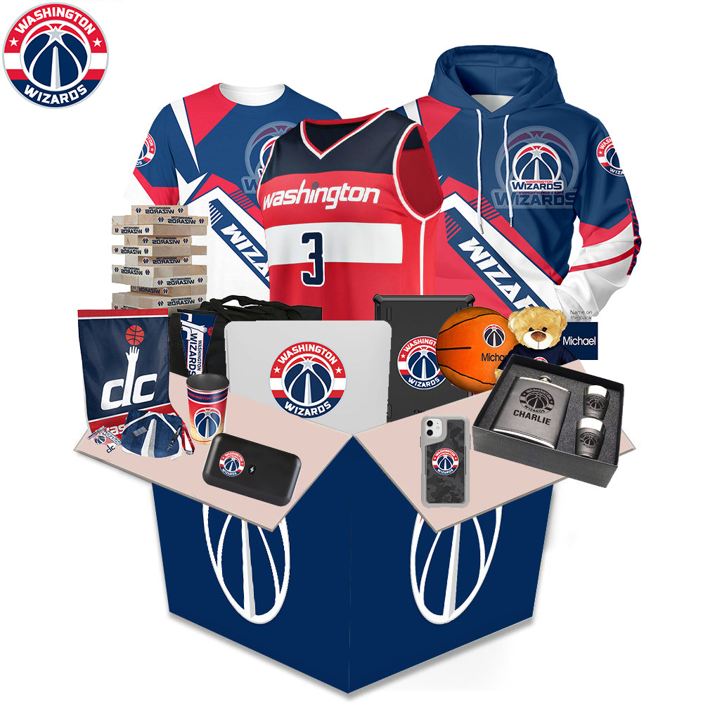 What's in the box During the festival, a limited number of Washington Wizards? Related products will be sent randomly. Including: Hoodie, Lego, Characters, Cup, Headphones, Stickers, Airpods Case, iPhone Case, Puzzles, Hats, Pillows and Other Products. (The box is worth more than $100). All items are sent as gifts related to Washington Wizards.