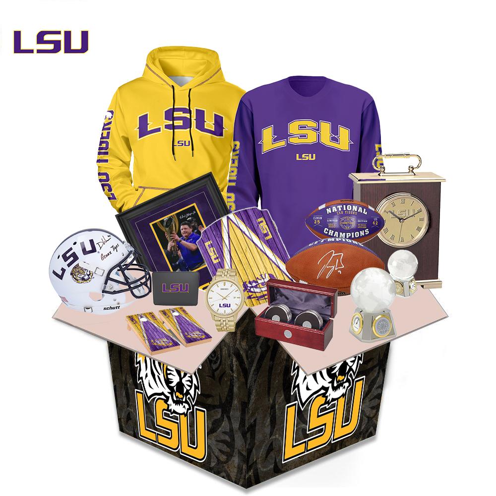 What's in the box During the festival, a limited number of LSU Tigers related products will be sent randomly. Related products will be sent randomly. Including: Hoodie, Lego, Characters, Cup, Headphones, Stickers, Airpods Case, iPhone Case, Puzzles, Hats, Pillows and Other Products. (The box is worth more than $100). All items are sent as gifts related to LSU Tigers.