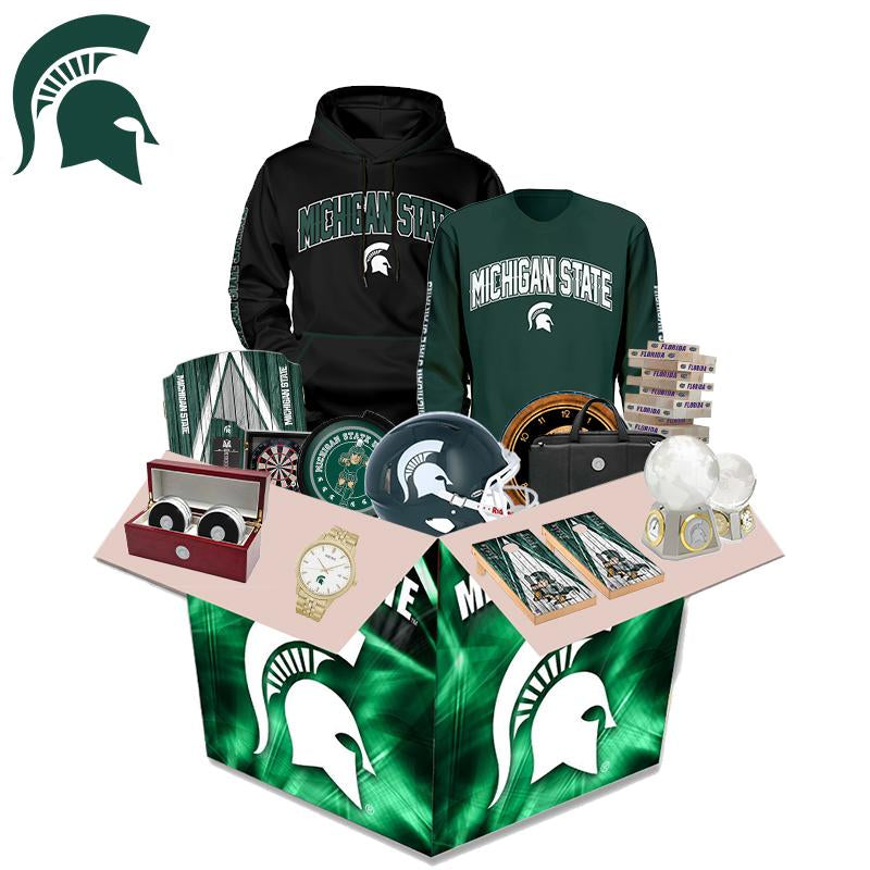 What's in the box During the festival, a limited number of Michigan State Spartans related products will be sent randomly. Related products will be sent randomly. Including: Hoodie, Lego, Characters, Cup, Headphones, Stickers, Airpods Case, iPhone Case, Puzzles, Hats, Pillows and Other Products. (The box is worth more than $100). All items are sent as gifts related to Michigan State Spartans.