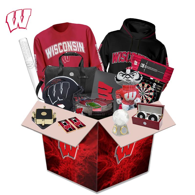What's in the box During the festival, a limited number of Wisconsin Badgers related products will be sent randomly. Related products will be sent randomly. Including: Hoodie, Lego, Characters, Cup, Headphones, Stickers, Airpods Case, iPhone Case, Puzzles, Hats, Pillows and Other Products. (The box is worth more than $100). All items are sent as gifts related to Wisconsin Badgers