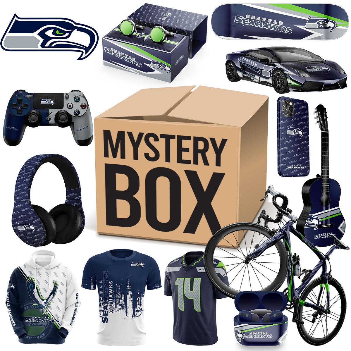 What's in the box During the festival, a limited number of Seattle Seahawks? Related products will be sent randomly. Including? Hoodie, Lego, Characters, Cup, Headphones, Stickers, Airpods Case, iPhone Case, Puzzles, Hats, Pillows and Other Products. (The box is worth more than $100). All items are sent as gifts related to Seattle Seahawks.