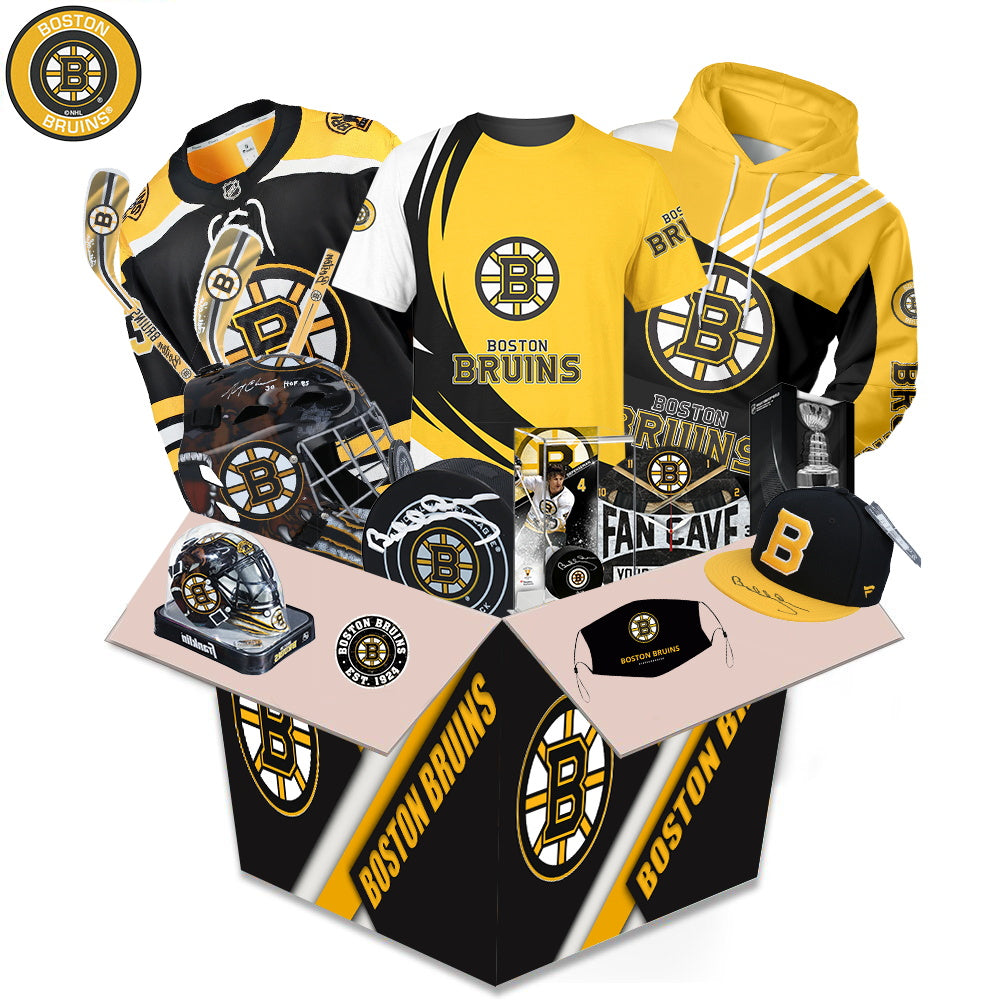 What's in the box During the festival, a limited number of Boston Bruins related products will be sent randomly. Related products will be sent randomly. Including: Hoodie, Lego, Characters, Cup, Headphones, Stickers, Airpods Case, iPhone Case, Puzzles, Hats, Pillows and Other Products. (The box is worth more than $100). All items are sent as gifts related to Boston Bruins.