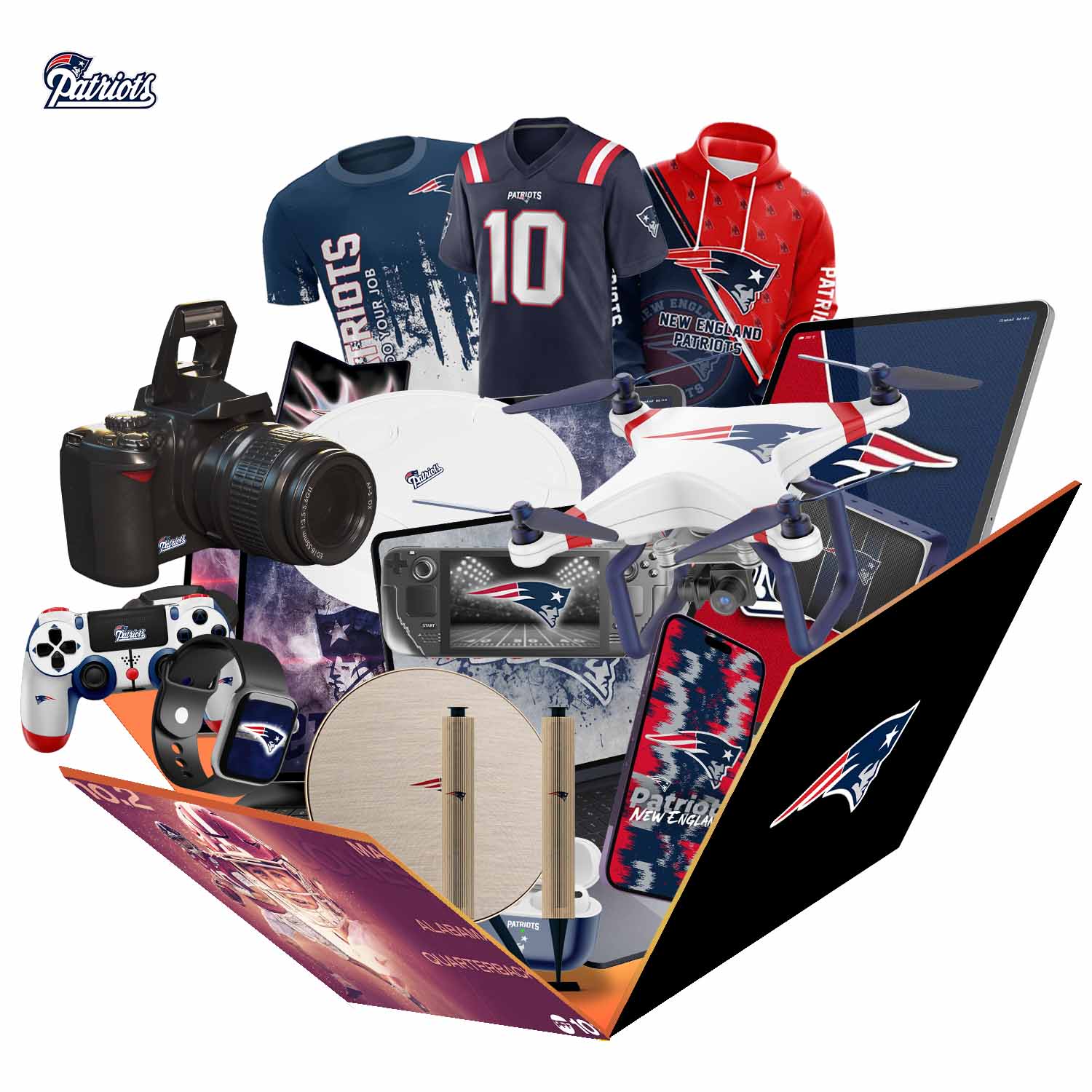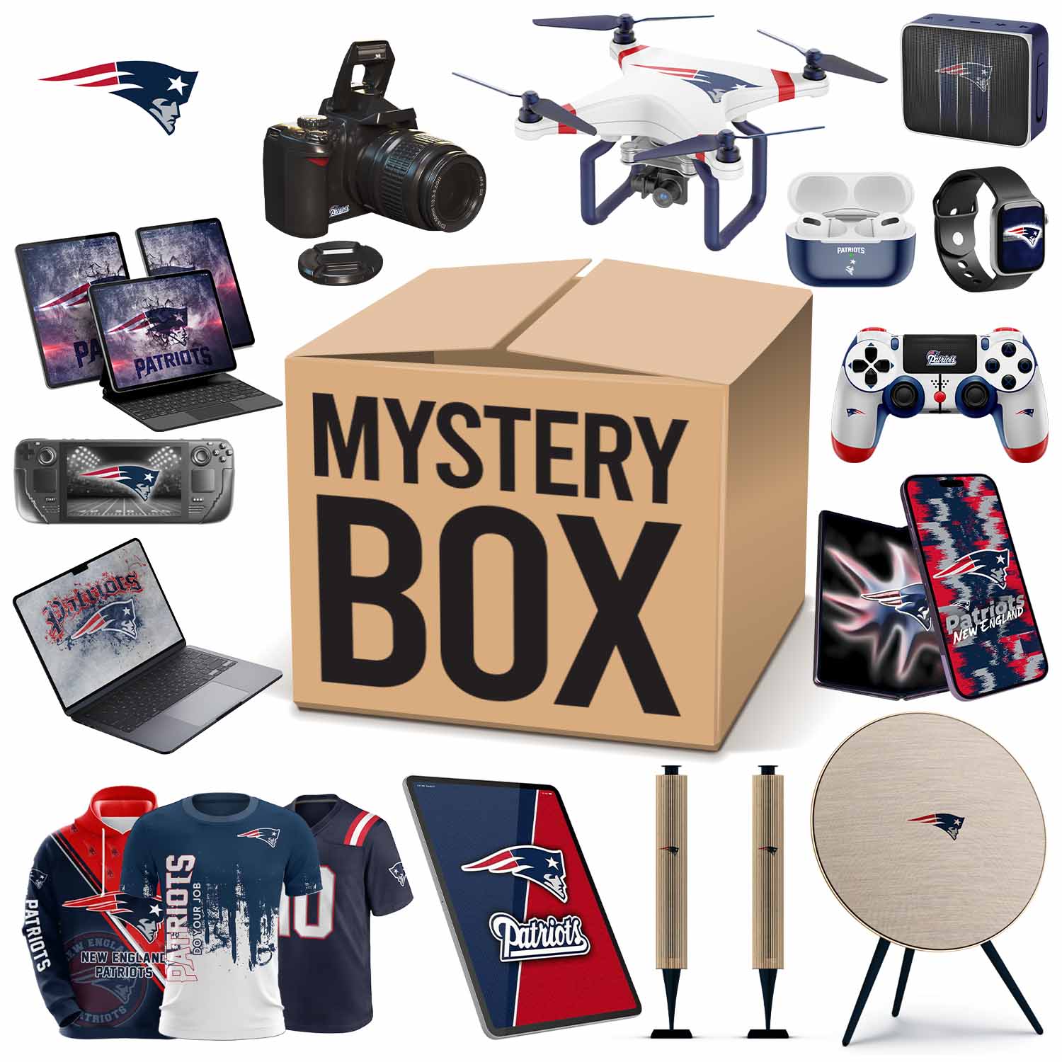 A limited number of New England Patriots will be available during the holiday season. Related products will be shipped randomly. Including Touchscreen Watches, Joystick Consoles, Mobile Phones, Drones, Sweepers, Tablets and other products. (Gift box value exceeds $1,000). All items are New England Patriots related gifts.