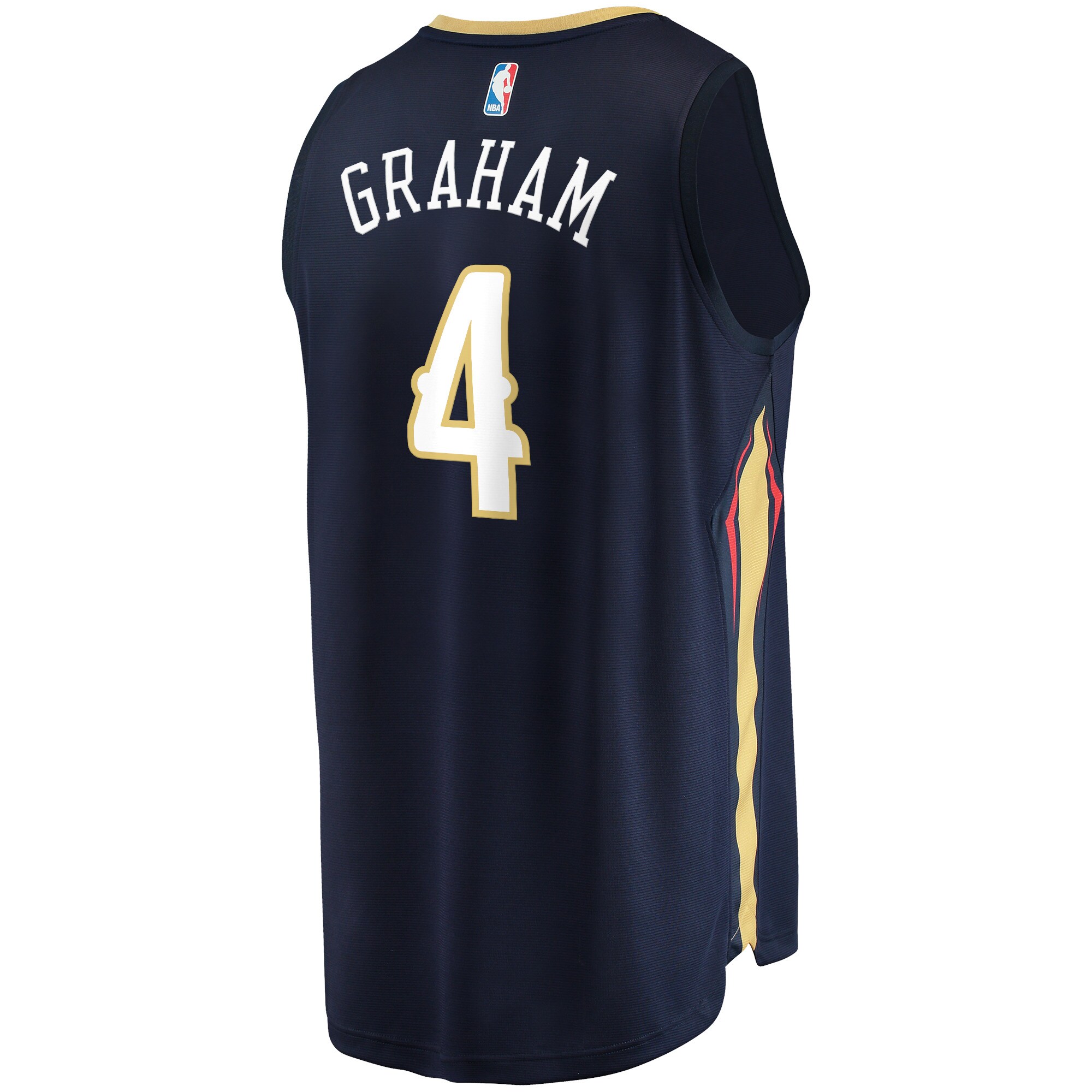 Match your favorite New Orleans Pelicans player this season with this Devonte' Graham 2021/22 Fast Break Replica Icon Edition jersey from Fanatics Branded. The detailed graphics give you a game-ready aesthetic while the lightweight feel and tailored fit ensure a comfortable game day experience. This jersey is a must-have for any dedicated New Orleans Pelicans supporter.