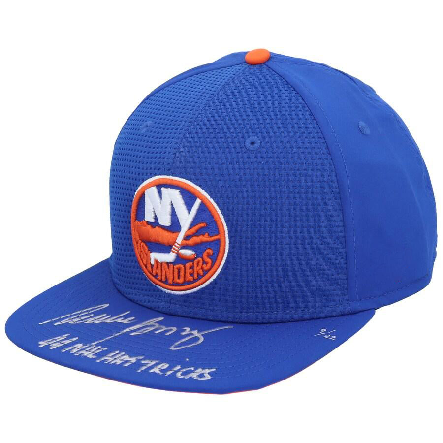 Autographed New York Islanders Mike Bossy Royal Snapback Cap with "44 NHL Hat Tricks" Inscription - Limited Edition of 22