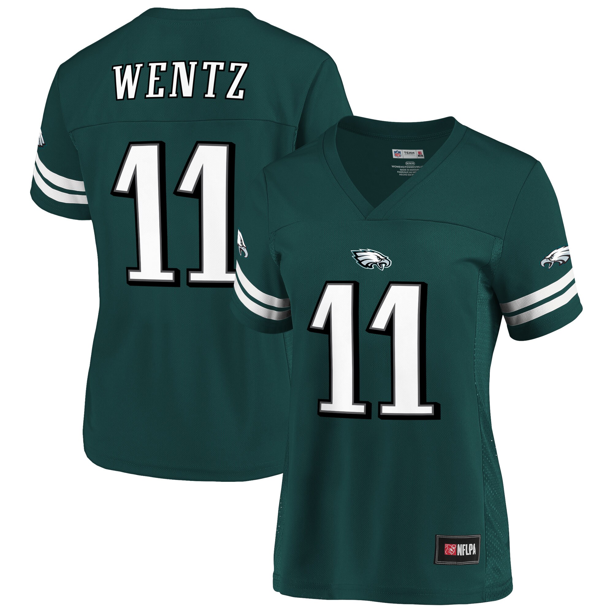 Rep your favorite Philadelphia Eagles star all season long with this Carson Wentz jersey from Fanatics Branded. Its classic design features breathable mesh panels on the sides for added ventilation. Along with bold sleeve accents in Philadelphia Eagles colors, the detailed printed name and number graphics provide the perfect look for game day.