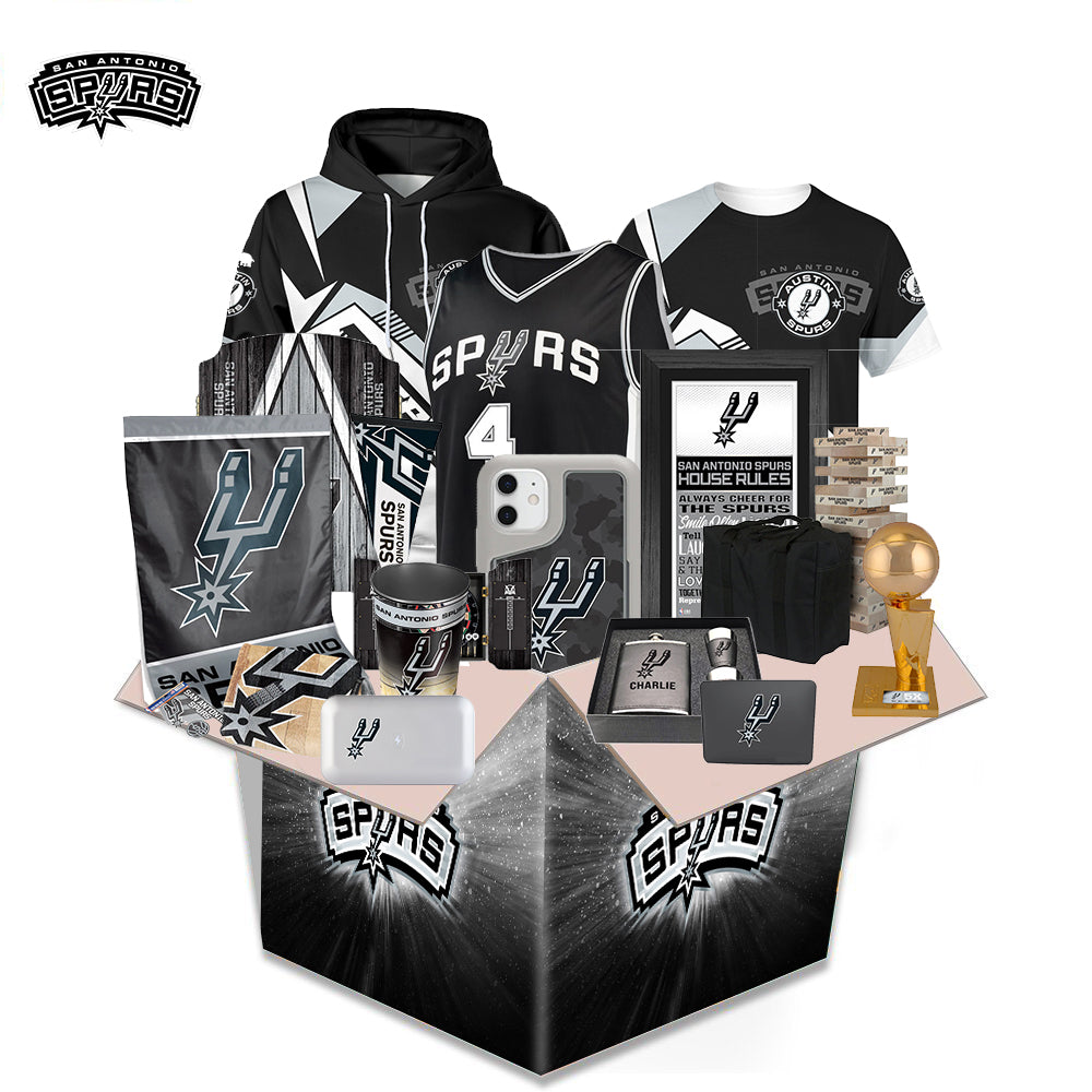 What's in the box During the festival, a limited number of San Antonio Spurs? Related products will be sent randomly. Including: Hoodie, Lego, Characters, Cup, Headphones, Stickers, Airpods Case, iPhone Case, Puzzles, Hats, Pillows and Other Products. (The box is worth more than $100). All items are sent as gifts related to San Antonio Spurs.
