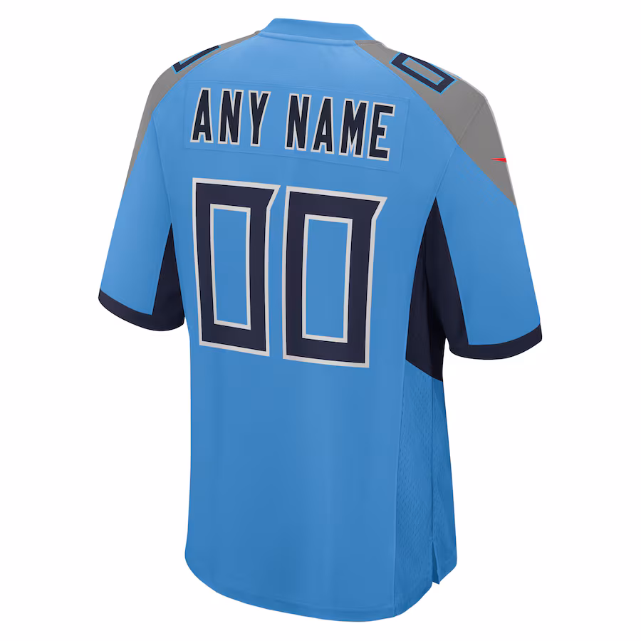 We want fans to celebrate their fandom by customizing and personalizing certain products. For these customizable products, including jerseys, we invite customers to tell us how they would like their preferred name or other text to appear by typing that text into the field indicated. However, just because a customer is able to type proposed customization text into the field and is able to complete the order through the website, not all proposed customization text will be accepted. Please note, We may reject and cancel any customization order for any reason, including for messages that are deemed offensive or inappropriate. Take your Tennessee Titans fandom to the next level when you grab this Custom Game Jersey. This Nike gear is perfect for an avid Tennessee Titans fan like you who never misses a moment of the action. The crisp graphics will put your unwavering pride on full display and ensure everyone knows who you're rooting for at the next game!