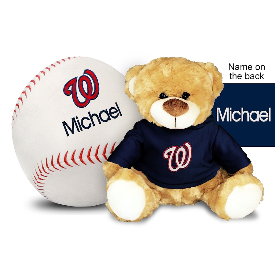 Washington Nationals 10'' Personalized Plush Bear & Baseball Set - Navy