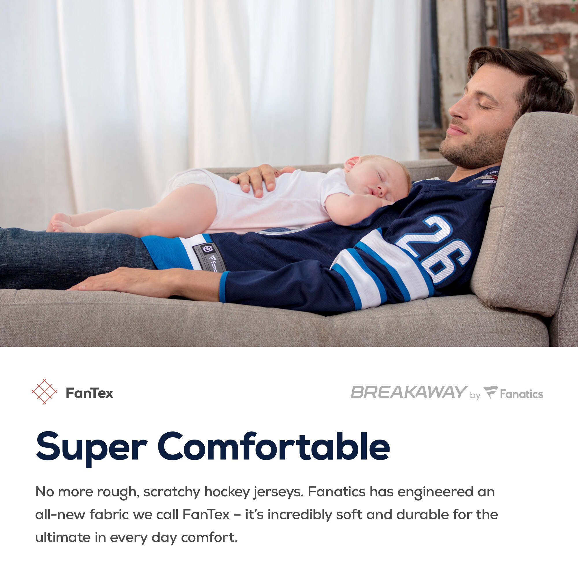 We want fans to celebrate their fandom by customizing and personalizing certain products. For these customizable products, including jerseys, we invite customers to tell us how they would like their preferred name or other text to appear by typing that text into the field indicated. However, just because a customer is able to type proposed customization text into the field and is able to complete the order through the website, not all proposed customization text will be accepted. Please note, Fanatics may reject and cancel any customization order for any reason, including for messages that are deemed offensive or inappropriate. Introducing the Breakaway by Fanatics - the official jersey made just for the fans. From the world's largest collection of officially licensed gear comes the first jersey inspired and built by fans for fans. We asked NHL devotees what they wanted in a new jersey. We listened and we delivered, creating a jersey with an exclusive set of features designed for the fan.