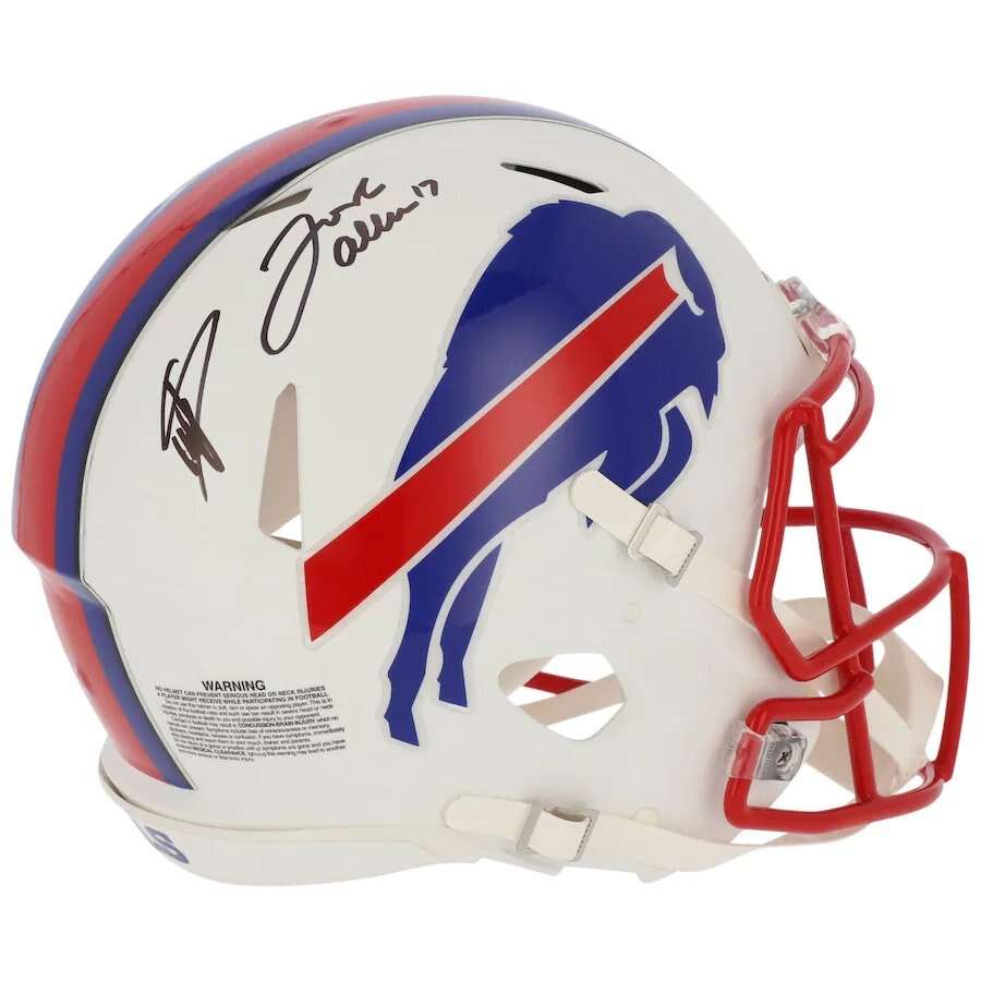 Autographed Buffalo Bills Josh Allen & Stefon Diggs Riddell Flat White Alternate Revolution Speed Authentic Helmet(9.1%)Contains