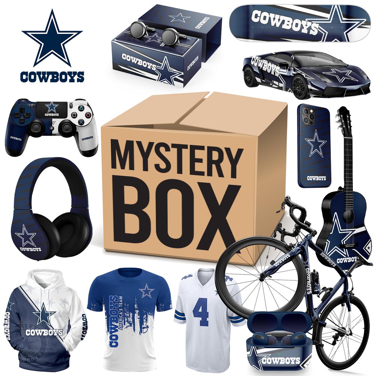What's in the box During the festival, a limited number of Dallas Cowboys? Related products will be sent randomly. Including: Hoodie, Lego, Characters, Cup, Headphones, Stickers, Airpods Case, iPhone Case, Puzzles, Hats, Pillows and Other Products. (The box is worth more than $100). All items are sent as gifts related to Dallas Cowboys.