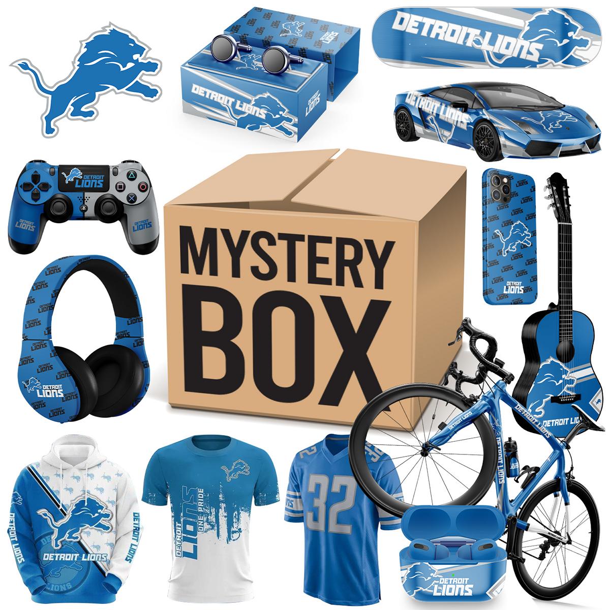 What's in the box During the festival, a limited number of Detroit Lions? Related products will be sent randomly. Including: Hoodie, Lego, Characters, Cup, Headphones, Stickers, Airpods Case, iPhone Case, Puzzles, Hats, Pillows and Other Products. (The box is worth more than $100). All items are sent as gifts related to Detroit Lions.