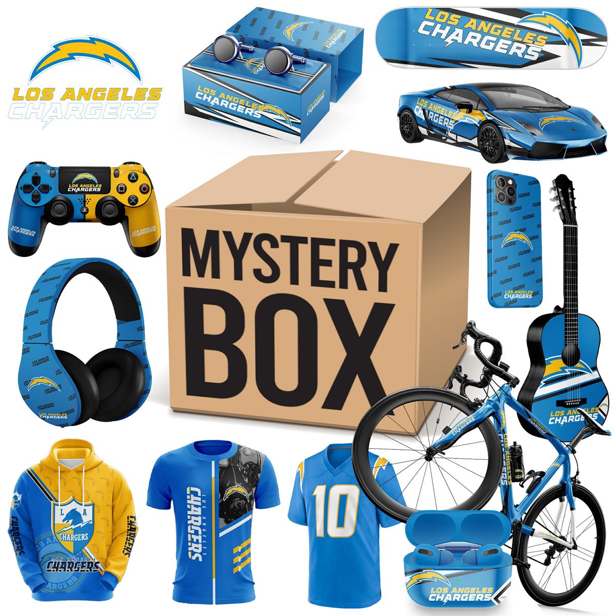 What's in the box During the festival, a limited number of Los Angeles Chargers? Related products will be sent randomly. Including: Hoodie, Lego, Characters, Cup, Headphones, Stickers, Airpods Case, iPhone Case, Puzzles, Hats, Pillows and Other Products. (The box is worth more than $100). All items are sent as gifts related to Los Angeles Chargers.