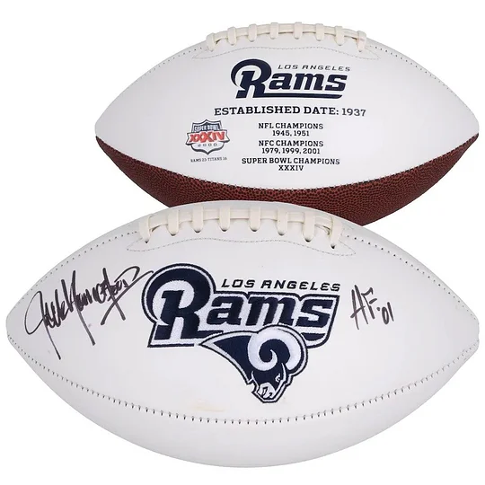 Autographed Los Angeles Rams Jack Youngblood White Panel Football with HOF 01 Inscription(21.4%)Contains