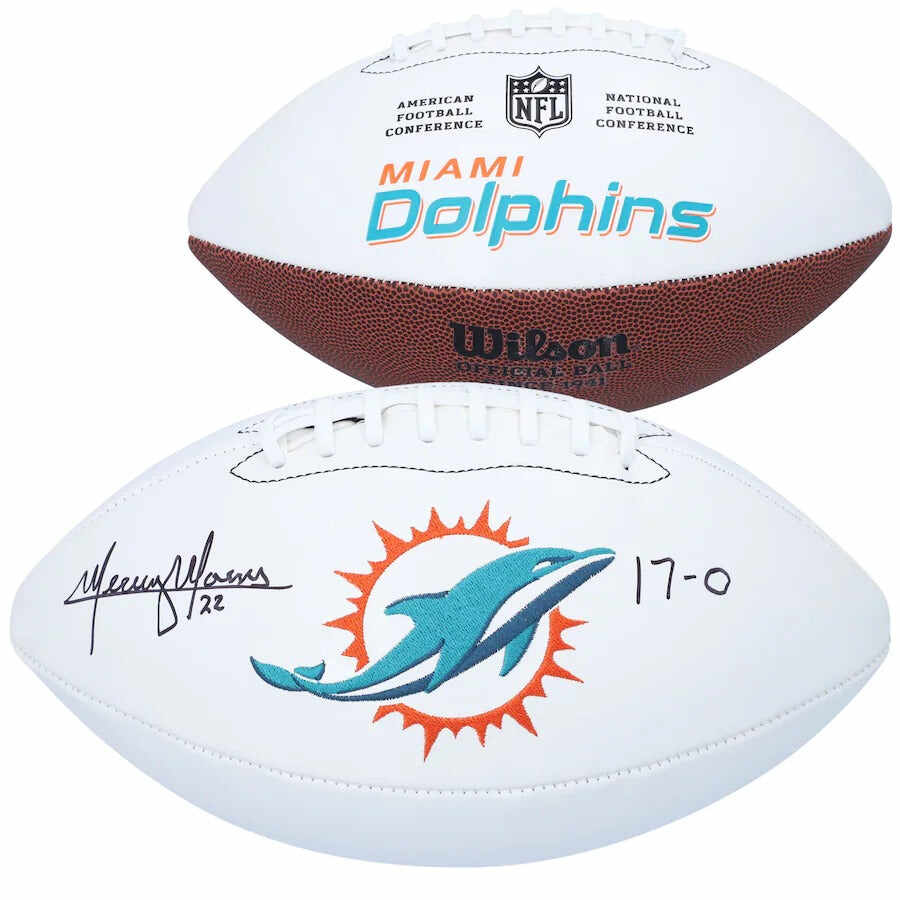 Autographed Miami Dolphins Mercury Morris Wilson White Panel Football with 17-0 Inscription(21.8%)Contains