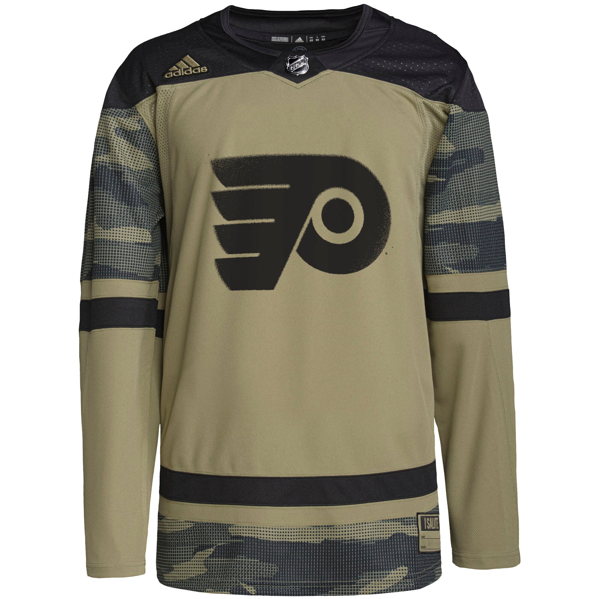 This Military Appreciation Team Authentic Practice Jersey by adidas is a unique addition to your Philadelphia Flyers collection. It will quickly become your go-to for cheering on your favorite team. Featuring bold Philadelphia Flyers graphics and camouflage details, there will be no question that you are the biggest fan around.