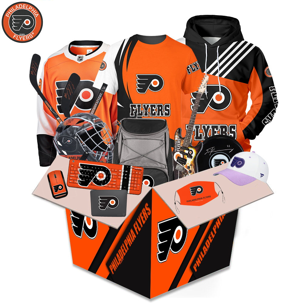 What's in the box During the festival, a limited number of Philadelphia Flyers related products will be sent randomly. Related products will be sent randomly. Including: Hoodie, Lego, Characters, Cup, Headphones, Stickers, Airpods Case, iPhone Case, Puzzles, Hats, Pillows and Other Products. (The box is worth more than $100). All items are sent as gifts related to Philadelphia Flyers.