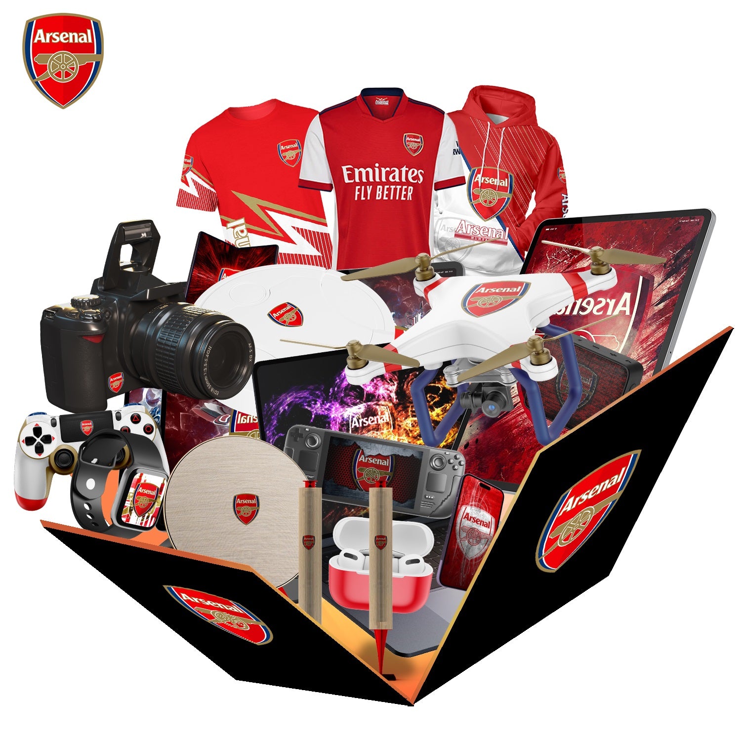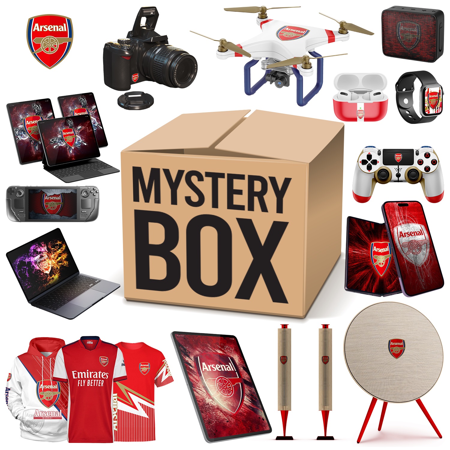 A limited number of Arsenal will be available during the holiday season. Related products will be shipped randomly. Including Touchscreen Watches, Joystick Consoles, Mobile Phones, Drones, Sweepers, Tablets and other products. (Gift box value exceeds $1,000). All items are Arsenal related gifts.