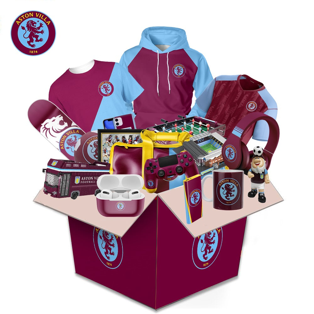 What's in the box During the festival, a limited number of Aston Villa? Related products will be sent randomly. Including: Hoodie, Lego, Characters, Cup, Headphones, Stickers, Airpods Case, iPhone Case, Puzzles, Hats, Pillows and Other Products. (The box is worth more than $100). All items are sent as gifts related to Aston Villa.