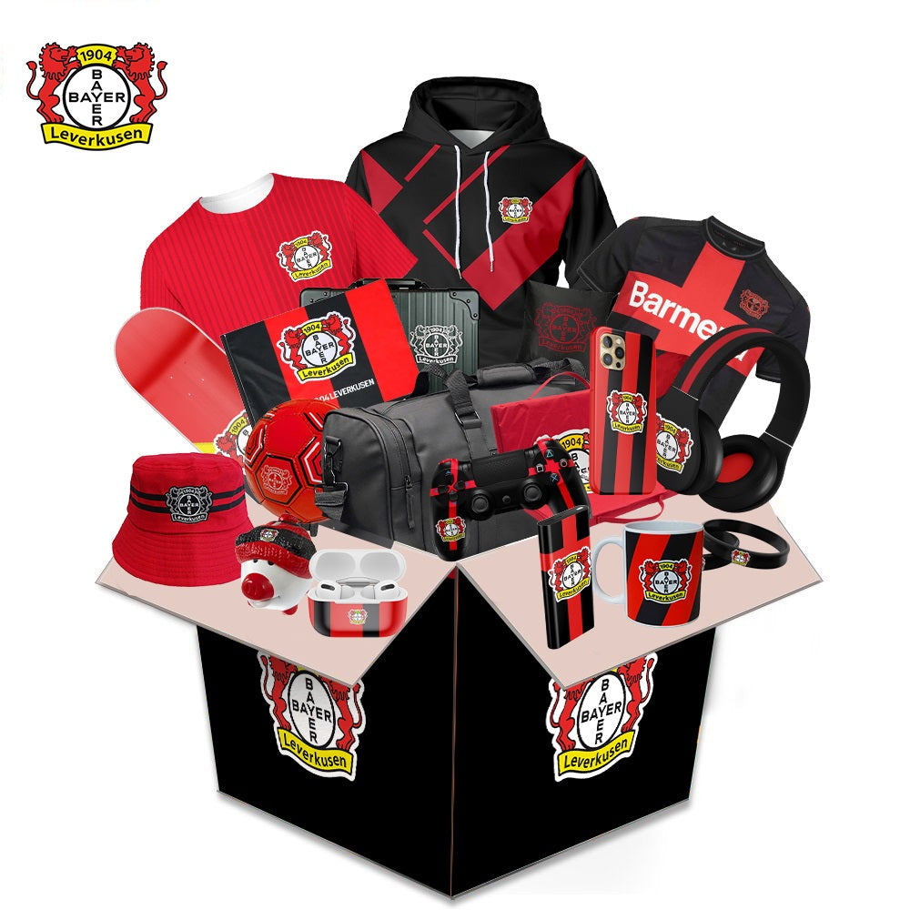 What's in the box During the festival, a limited number of Bayer 04 Leverkusen? Related products will be sent randomly. Including: Hoodie, Lego, Characters, Cup, Headphones, Stickers, Airpods Case, iPhone Case, Puzzles, Hats, Pillows and Other Products. (The box is worth more than $100). All items are sent as gifts related to Bayer 04 Leverkusen.