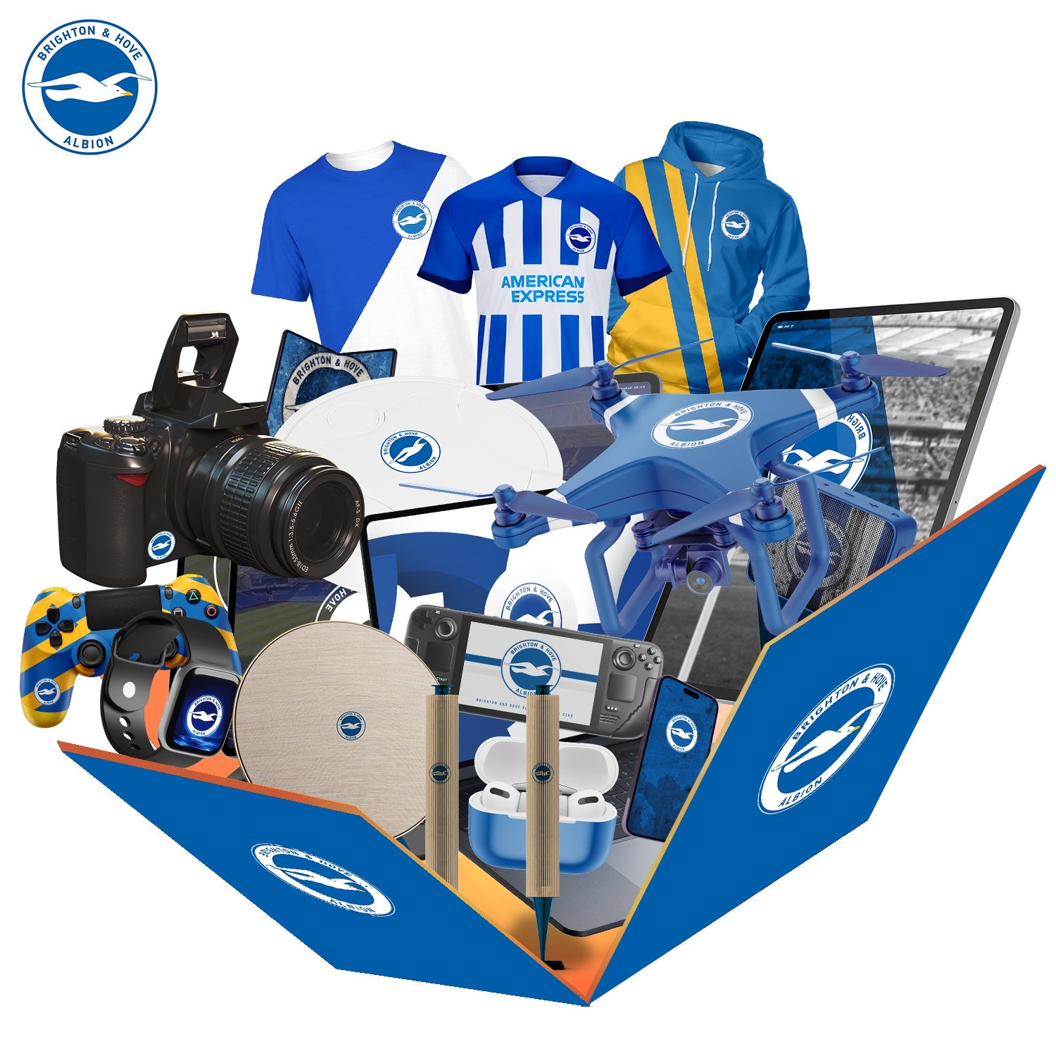 A limited number of Brighton and Hove Albion will be available during the holiday season. Related products will be shipped randomly. Including Touchscreen Watches, Joystick Consoles, Mobile Phones, Drones, Sweepers, Tablets and other products. (Gift box value exceeds $1,000). All items are Brighton and Hove Albion related gifts.