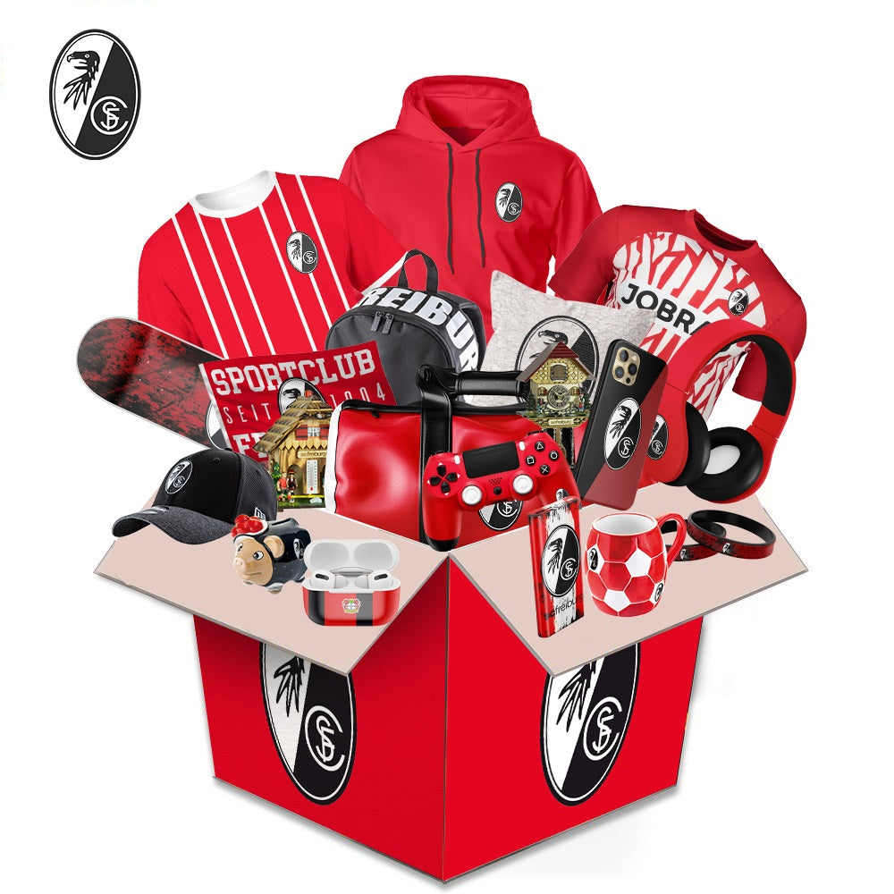 What's in the box During the festival, a limited number of Sport-Club Freiburg? Related products will be sent randomly. Including: Hoodie, Lego, Characters, Cup, Headphones, Stickers, Airpods Case, iPhone Case, Puzzles, Hats, Pillows and Other Products. (The box is worth more than $100). All items are sent as gifts related to Sport-Club Freiburg.