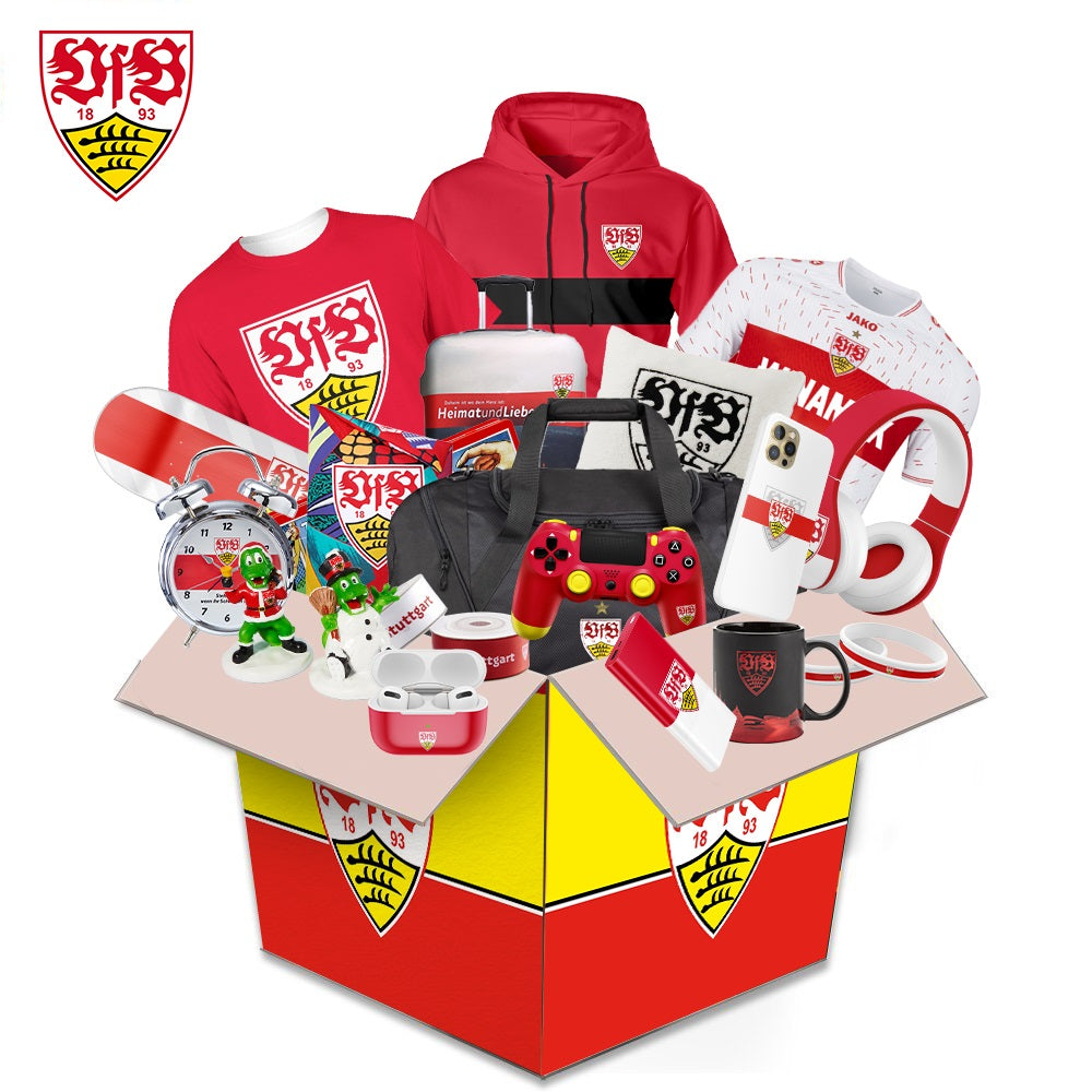 What's in the box During the festival, a limited number of VfB Stuttgart? Related products will be sent randomly. Including: Hoodie, Lego, Characters, Cup, Headphones, Stickers, Airpods Case, iPhone Case, Puzzles, Hats, Pillows and Other Products. (The box is worth more than $100). All items are sent as gifts related to VfB Stuttgart.